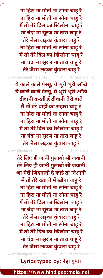 Lyrics of Na Hira Na Moti - ना हिरा ना मोती ना सोना चाहू रे