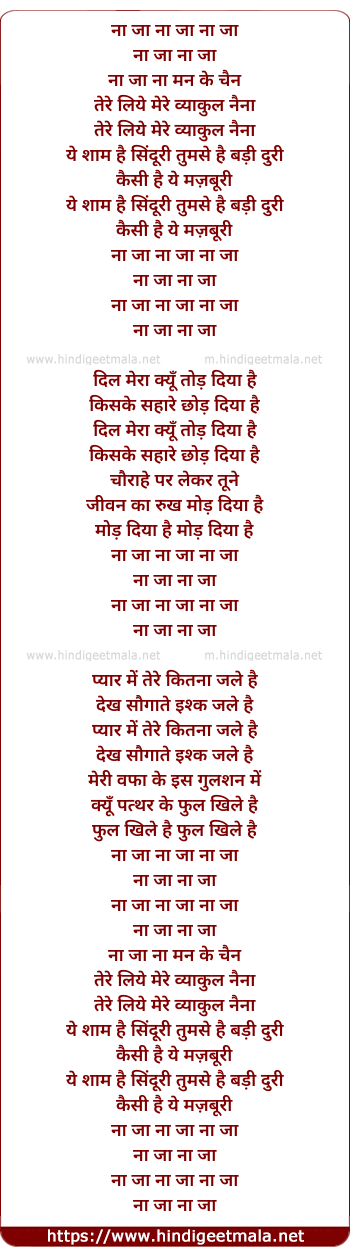 Lyrics of Na Ja Na Ja Na Ja - ना जा ना जा ना जा