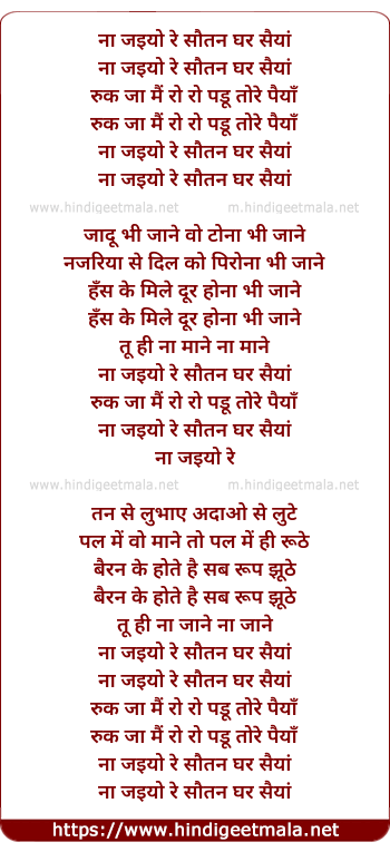 Lyrics of Na Jaiyyo Re Sautan Ghar Saiyyan - ना जइयो रे सौतन घर सैयां
