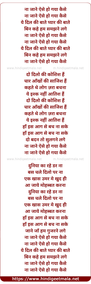 Lyrics of Na Jane Aise Ho Gaya Kaise - ना जाने ऐसे हो गया कैसे