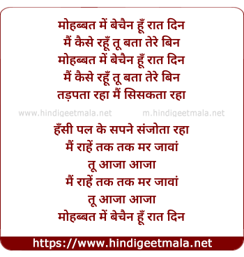Lyrics of Na Jiya Jaye Yaar Bina - मोहब्बत में बेचैन हूँ रात दिन