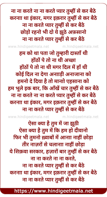 Lyrics of Na Na Karte Pyaar Tumhi Se Kar Baithe - ना ना करते प्यार तुम्हीं से कर बैठे