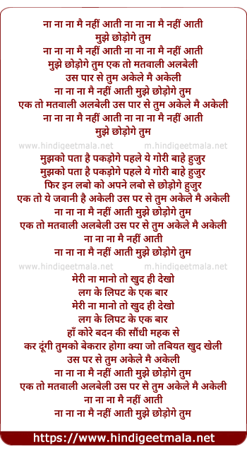 Lyrics of Na Na Na Mai Nahi Aati - ना ना ना मै नहीं आती