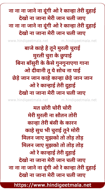 Lyrics of Na Nana Na Jane Na Dungi - ना नाना ना जाने ना दूंगी