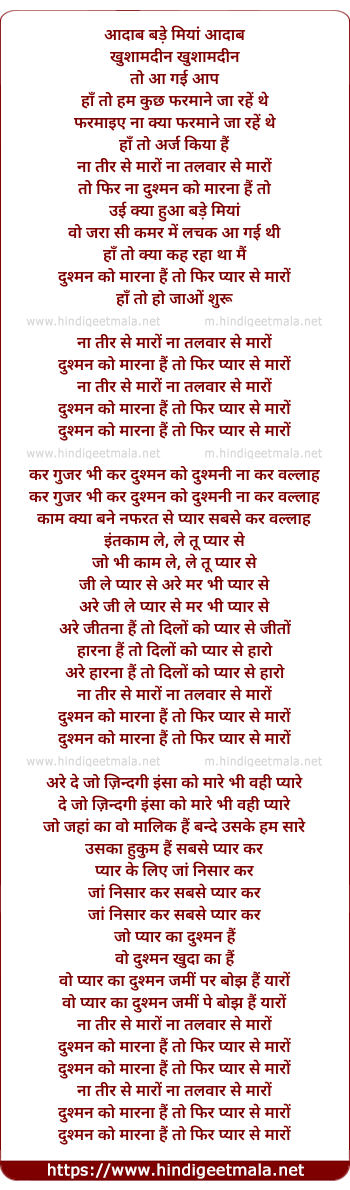 Lyrics of Na Teer Se Maro - ना तीर से मारों