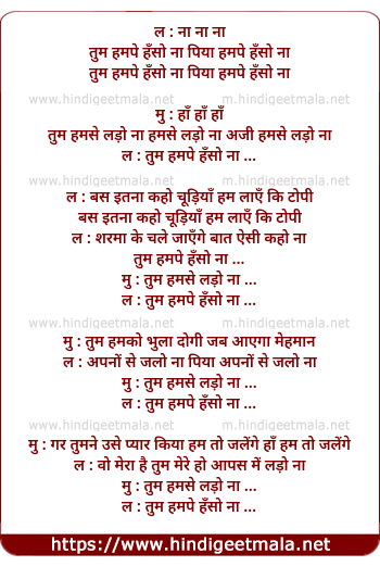 Lyrics of Na Tum Humpe Hanso Na Piya - ल : ना ना ना