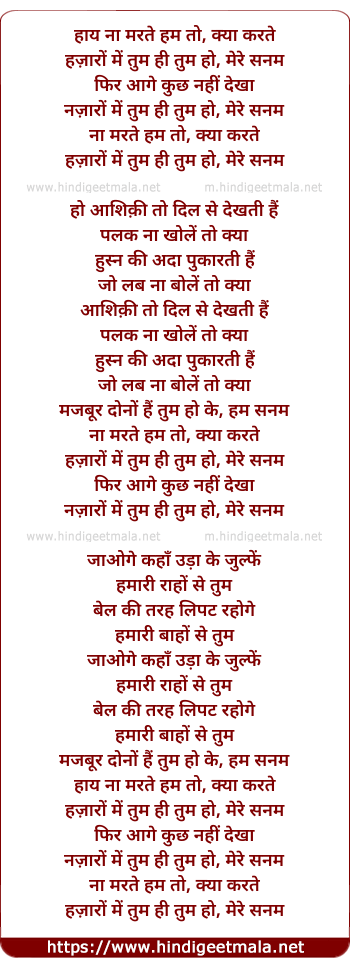 Lyrics of Naa Marte Hum - हाय ना मरते हम तो, क्या करते