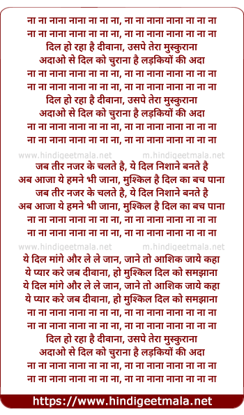 Lyrics of Naa Naa Nana Nana Naa Naa Naa - ना ना नाना नाना ना ना ना