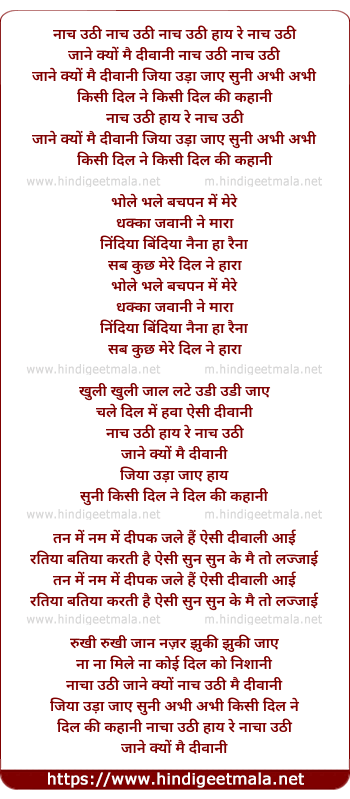 Lyrics of Nach Uthii Jaane Kyo Mai Diwani - नाच उठी जाने क्यों मैं दीवानी