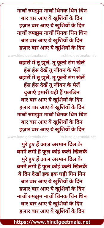 Lyrics of Nacho Rumjhum Nacho Dhinak Dhin Dhin - नाचों रुमझुम नाचों धिनक धिन धिन