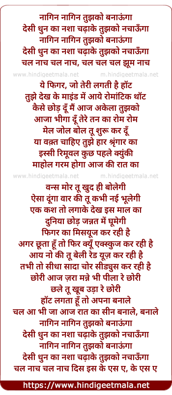 Lyrics of Naagin - नागिन नागिन तुझको बनाऊंगा