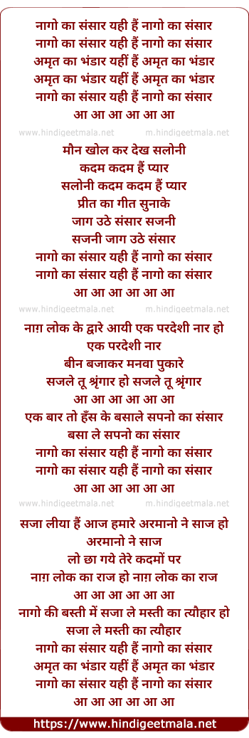 Lyrics of Naago Ka Sansar Yahi Hai - नागो का संसार यही हैं