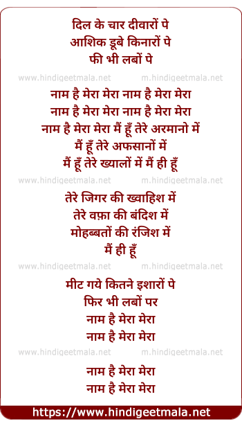 Lyrics of Naam Hai Mera - नाम है मेरा