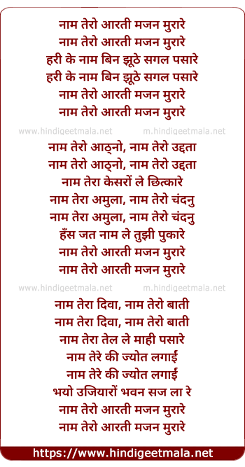 Lyrics of Naam Tero Aarti - नाम तेरो आरती