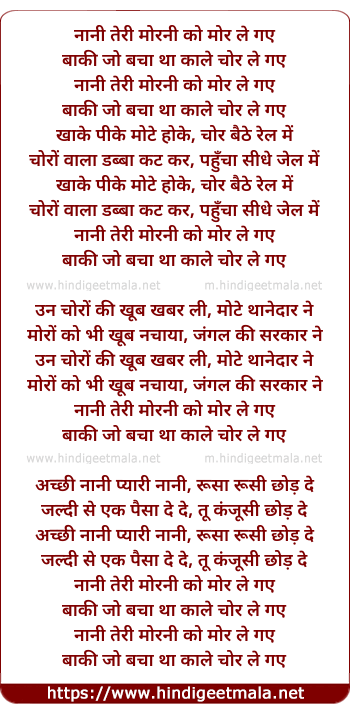 Lyrics of Naani Teri Morani Ko Mor Le Gae - नानी तेरी मोरनी को मोर ले गए