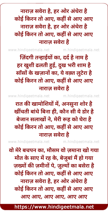 Lyrics of Naaraaz Saveraa Hai, Nazadik Saveraa Hai - नाराज़ सवेरा है, नजदीक सवेरा है
