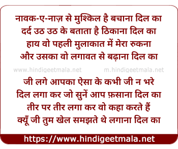 Lyrics of Naavak E Naaz Se Mushkil Hai Bachaanaa Dil Kaa - नावक-ए-नाज़ से मुश्किल है बचाना दिल का