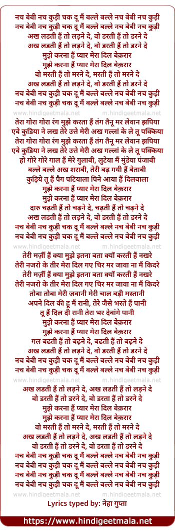 Lyrics of Nach Baby Nach Kudee Chak Du Mai Balle Balle - नच बेबी नच कुड़ी चक दूँ मैं बल्ले बल्ले