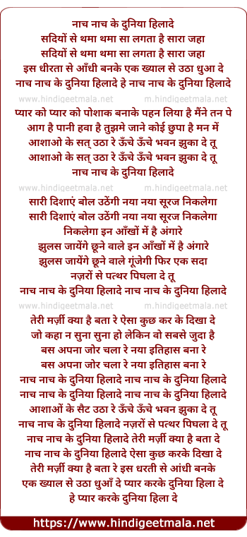 Lyrics of Nach Nach Ke Duniya Hila De - नाच नाच के दुनिया हिला दे