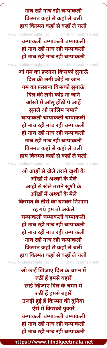 Lyrics of Nach Rahi Champakali - नाच रही चम्पाकली