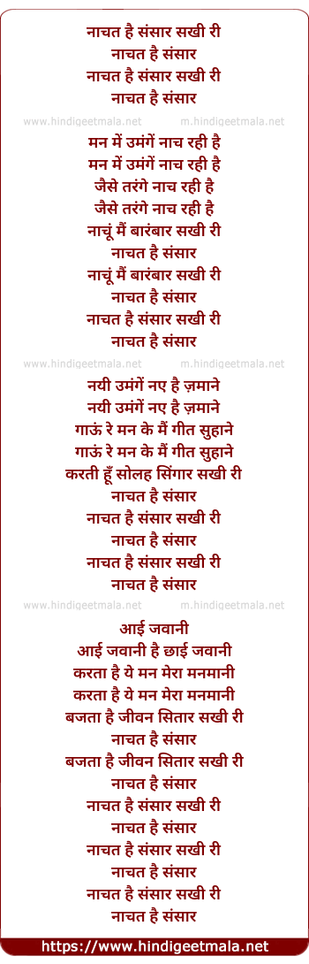 Lyrics of Nachat Hai Sansar Sakhi Ri - नाचत है संसार सखी री