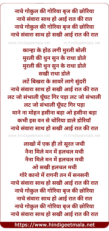 Lyrics of Nache Gokul Ki Goriyaa - नाचे गोकुल की गोरिया