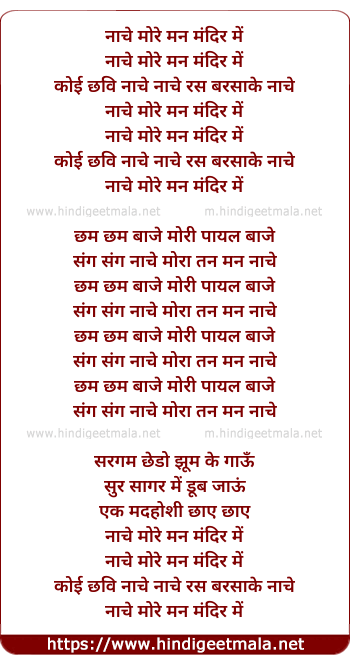 Lyrics of Nache More Man Mandir Me - नाचे मोरे मन मंदिर में