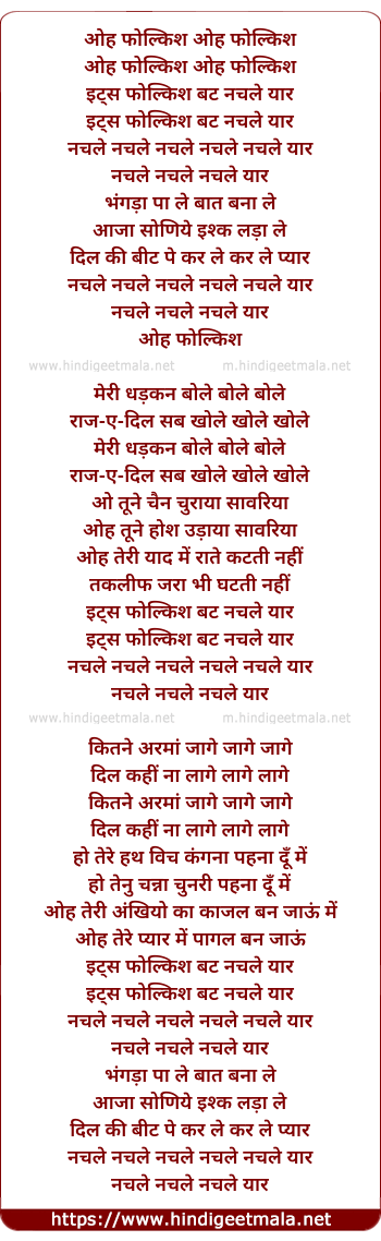 Lyrics of Nachle Its Folkish - ओह फोल्किश ओह फोल्किश