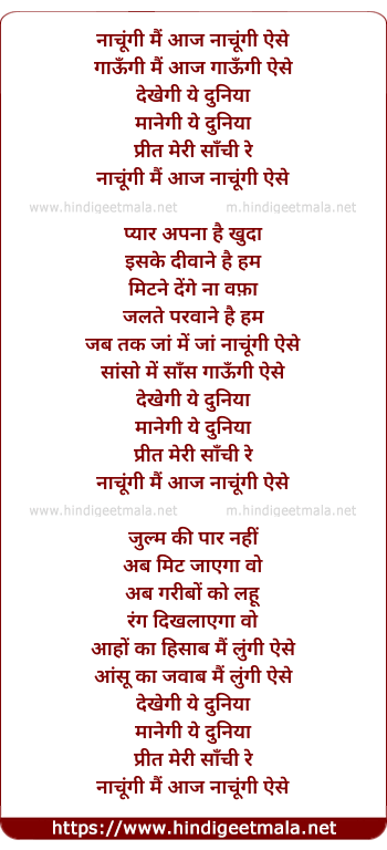 Lyrics of Nachoongi Main Aaj Nachoongi Aise - नाचूंगी मैं आज नाचूंगी ऐसे