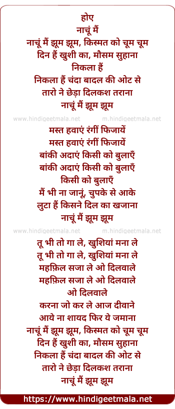 Lyrics of Nachu Mai Jhoom Jhoom - नाचूं मैं झूम झूम