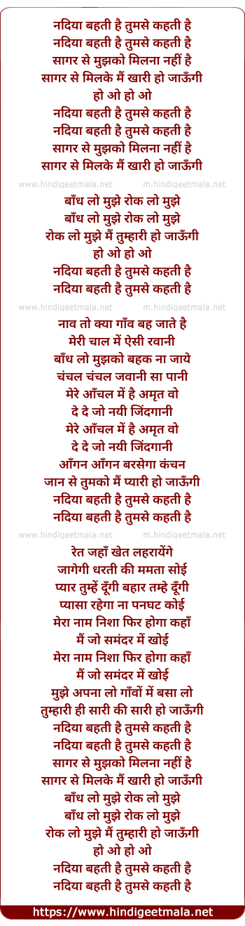 Lyrics of Nadiya Behti Hai - नदिया बहती है