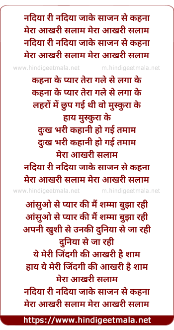 Lyrics of Nadiya Ri Nadiya Jaake Sajan Se - नदिया री नदिया जाके साजन से
