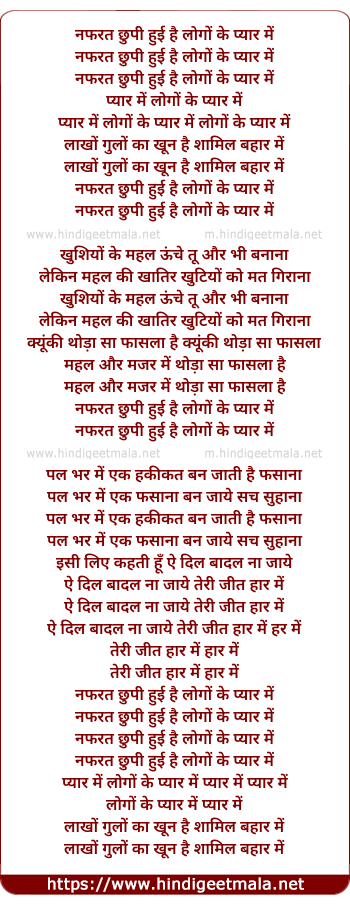 Lyrics of Nafrat Chhupi Hui Hai - नफरत छुपी हुई है