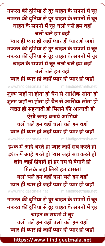 Lyrics of Nafrat Ki Dunia Se Dur - नफरत की दुनिया से दूर
