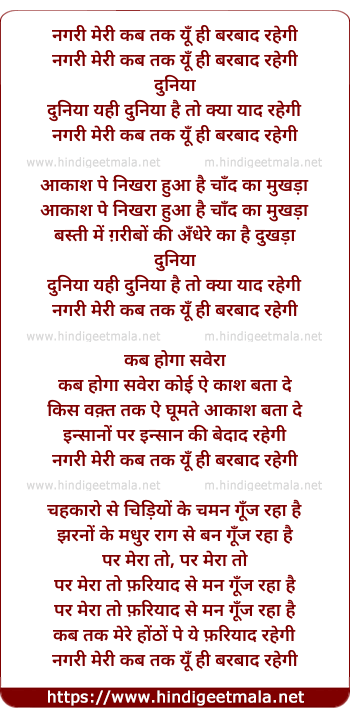Lyrics of Nagari Meri Kab Tak, Ai Chaand Ummidon Ko - नगरी मेरी कब तक, ए चाँद उम्मीदों को