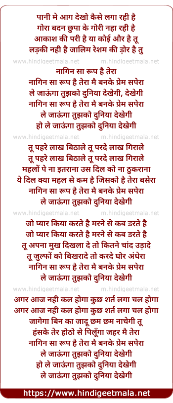 Lyrics of Nagin Sa Roop Hai Tera - नागिन सा रूप है तेरा