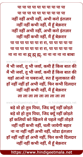 Lyrics of Nahi Nahi Abhi Nahi (The Unwind Mix) - पा पा पा पा पा पा पा पा पा पा