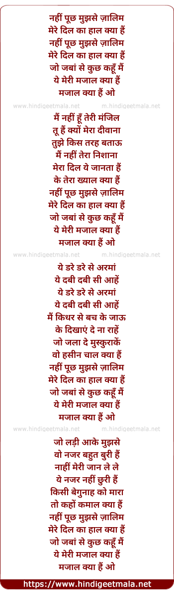 Lyrics of Nahi Puchh Mujhse Zalim - नहीं पूछ मुझसे ज़ालिम