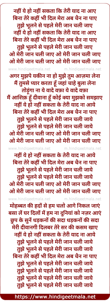 Lyrics of Nahi Ye Ho Nahi Sakta - नहीं ये हो नहीं सकता