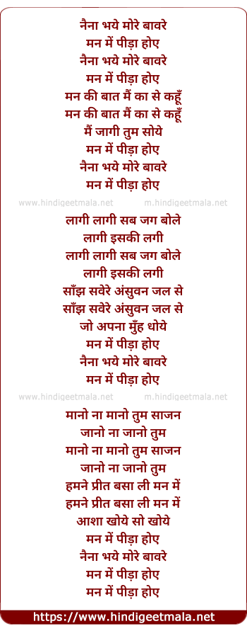 Lyrics of Nain Bhaye More Banwre - नैना भये मोरे बावरे