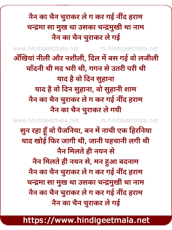Lyrics of Nain Ka Chain Churaakar Le Gai - नैन का चैन चुराकर ले ग कर गई नींद हराम