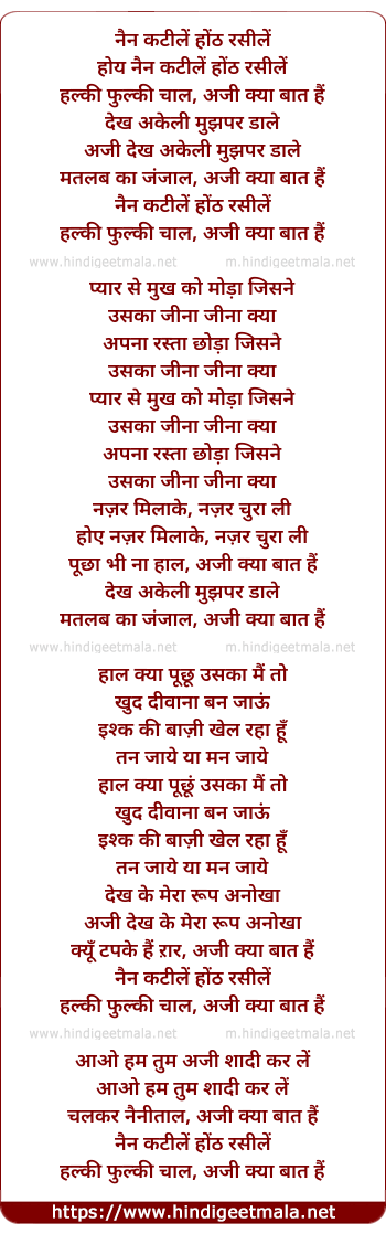 Lyrics of Nain Katile Honth Rasile - नैन कटीलें होंठ रसीलें
