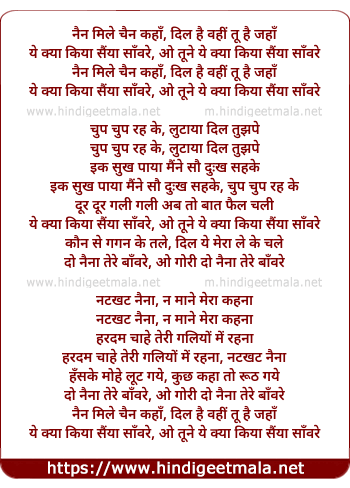 Lyrics of Nain Mile Chain Kaha, Dil Hai Wahi Tu Hai Jaha - नैन मिले चैन कहाँ, दिल है वहीं तू है जहाँ