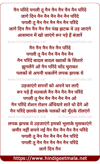 Lyrics of Nain Parinde - नैन परिंदे
