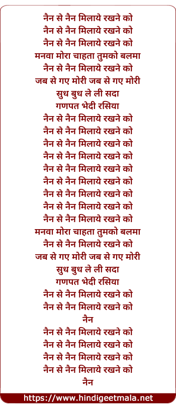 Lyrics of Nain Se Nain Mila Lo - नैन से नैन मिला लो