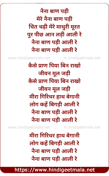 Lyrics of Naina Baan Padi - नैना बाण पड़ी