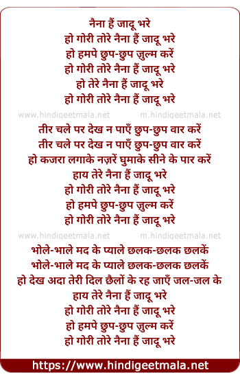 Lyrics of Naina Hain Jadu Bhare - नैना हैं जादू भरे