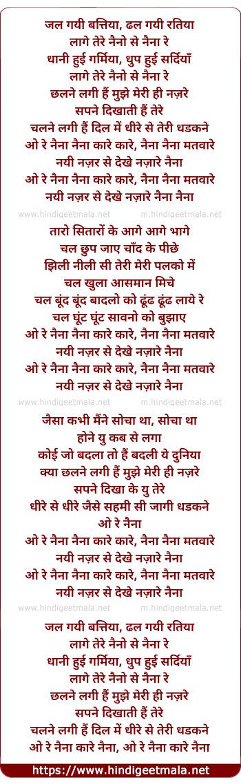 Lyrics of Naina, Jal Gayi Battiya - नैना, जल गयी बत्तिया