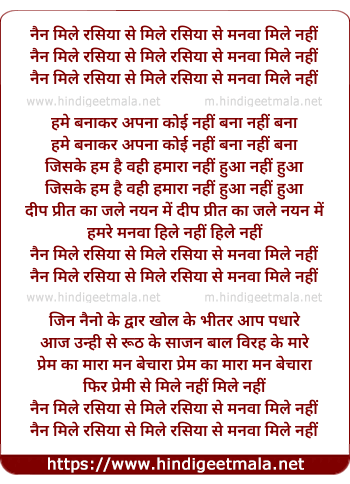 Lyrics of Naina Mile Rasiya Se - नैना मिले रसिया से