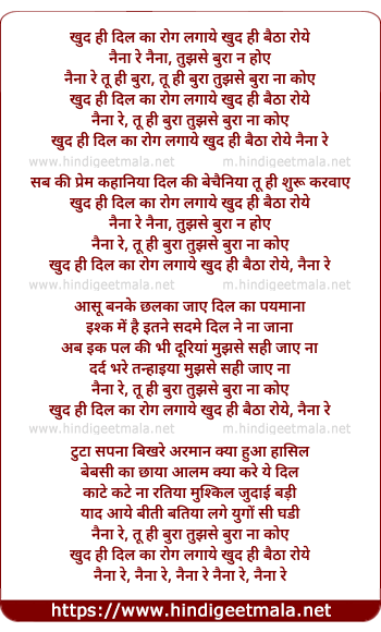 Lyrics of Naina Re Naina, Tujhse Bura Na Koye - नैना रे नैना, तुझसे बुरा ना कोये